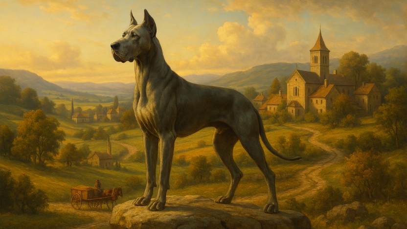 В XVII веке предки немецкого дога были любимцами при дворе знати Германии. Днем они охотились на медведей, кабанов и оленей, а ночью спали в одной комнате со своими королевскими хозяевами, защищая их от покушений.