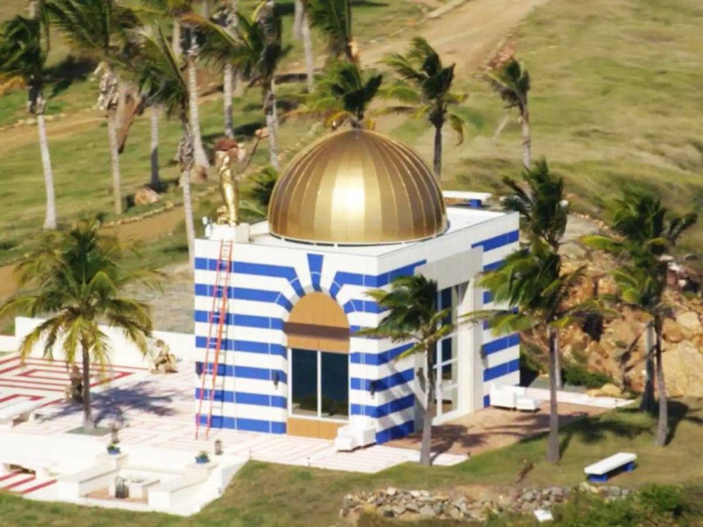 Одна из самых обсуждаемых фотографий — здание с куполом, напоминающее храм. Его назначение официально не раскрывалось, что породило многочисленные споры и версии в СМИ. Архивные кадры позволяют рассмотреть детали отделки и закрытый характер доступа к сооружению. Строение стало символом таинственности острова в общественном восприятии.