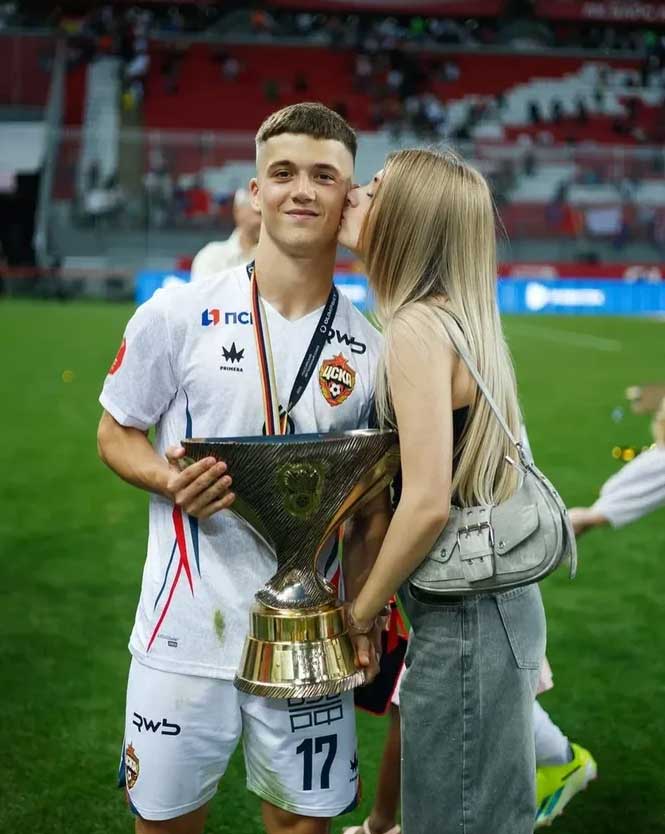 Арина стала известна широкой аудитории благодаря отношениям с полузащитником ЦСКА Кириллом Глебовым, который уже в 19 лет закрепился как один из самых перспективных игроков РПЛ. Их история началась в 2023 году с обычного сообщения в соцсетях, а спустя время девушка уже сопровождала футболиста на ключевых матчах. Болельщики запомнили ее после финала Кубка России в «Лужниках», где пара сделала совместное фото с трофеем. Арина активно поддерживает ЦСКА, посещает домашние игры и часто появляется на стадионе в компании других девушек футболистов.