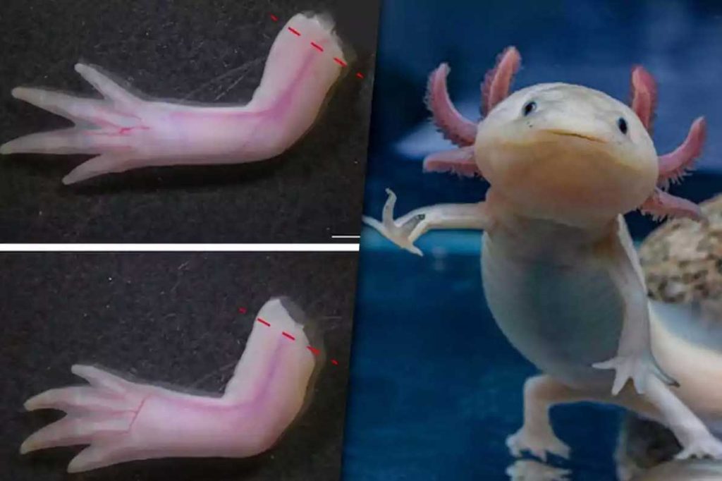 Аксолотль способен полностью восстанавливать утраченные конечности, фрагменты спинного мозга, ткани сердца и части мозга без образования рубцов. Эта способность делает его одним из ключевых объектов биологических исследований, направленных на понимание механизмов восстановления тканей у позвоночных. Учёные фиксируют, что регенерация у аксолотля происходит с сохранением функциональности органов.
