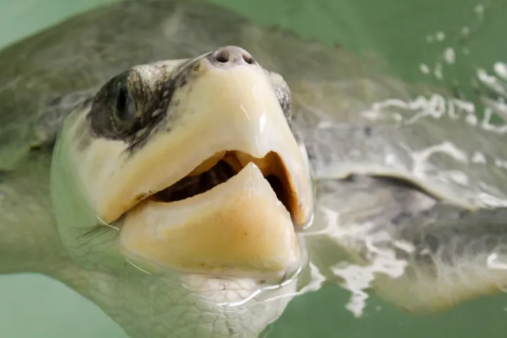 Клюв состоит из твердого, кератинового материала, который способствует постоянному потреблению черепахой растительно-ориентированной диеты. Такая эволюционная особенность гарантирует, что эти прекрасные создания хорошо приспособлены к выживанию в своей водной среде обитания.