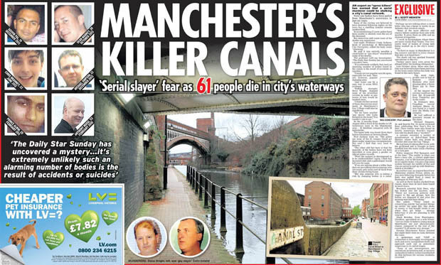 Ошеломляющая статистика появилась в Манчестере, Англия, когда в период с 2007 по 2015 год из городских водоемов было извлечено более 85 тел. Официальные источники утверждают, что за этими цифрами не стоит серийный убийца, но расследования продолжают изучать эту возможность. Сообщество по-прежнему в напряжении, поскольку слухи о «манчестерском толкателе» по-прежнему распространены.