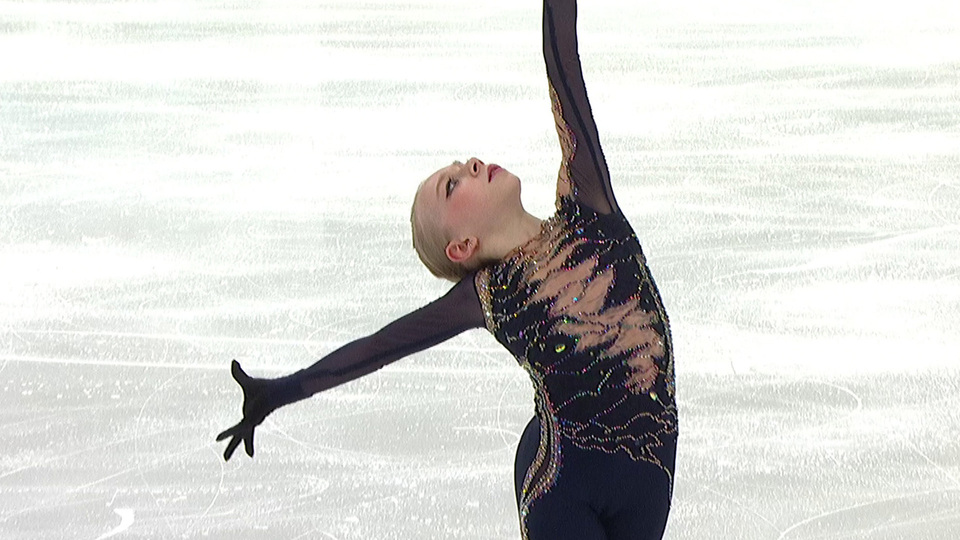 Алина Горбачёва заняла третье место на чемпионате России 2026 и славится тем, что сочетает в своём катании мощь и элегантность. Природная пластичность и утончённость линий — это то, что выделяет её образы среди остальных участниц.