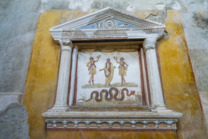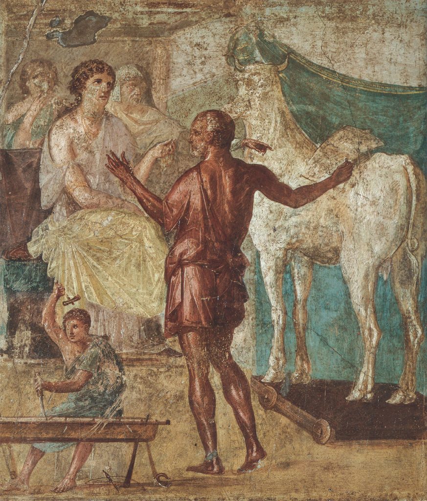 Громадная фигура бога плодородия Приапа, свисающего свой впечатляющий орган против мешка золота, украшала вход в дом. Эта картина, едкая и юмористичная, служила одновременно для защиты дома от дурного глаза и для поднятия настроения гостей.