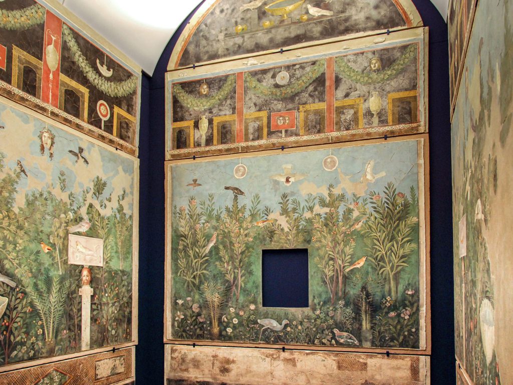 Здесь стены теряют свои рамки и превращаются в бесконечный сад: деревья, птицы и плоды словно выходят за пределы плоскости. Роспись создаёт иллюзию, что ты сидишь под навесом бесконечного лета, несмотря на то, что этот сад был запечатлён более двух тысяч лет назад, чтобы украсить столовую знатной домохозяйки.
