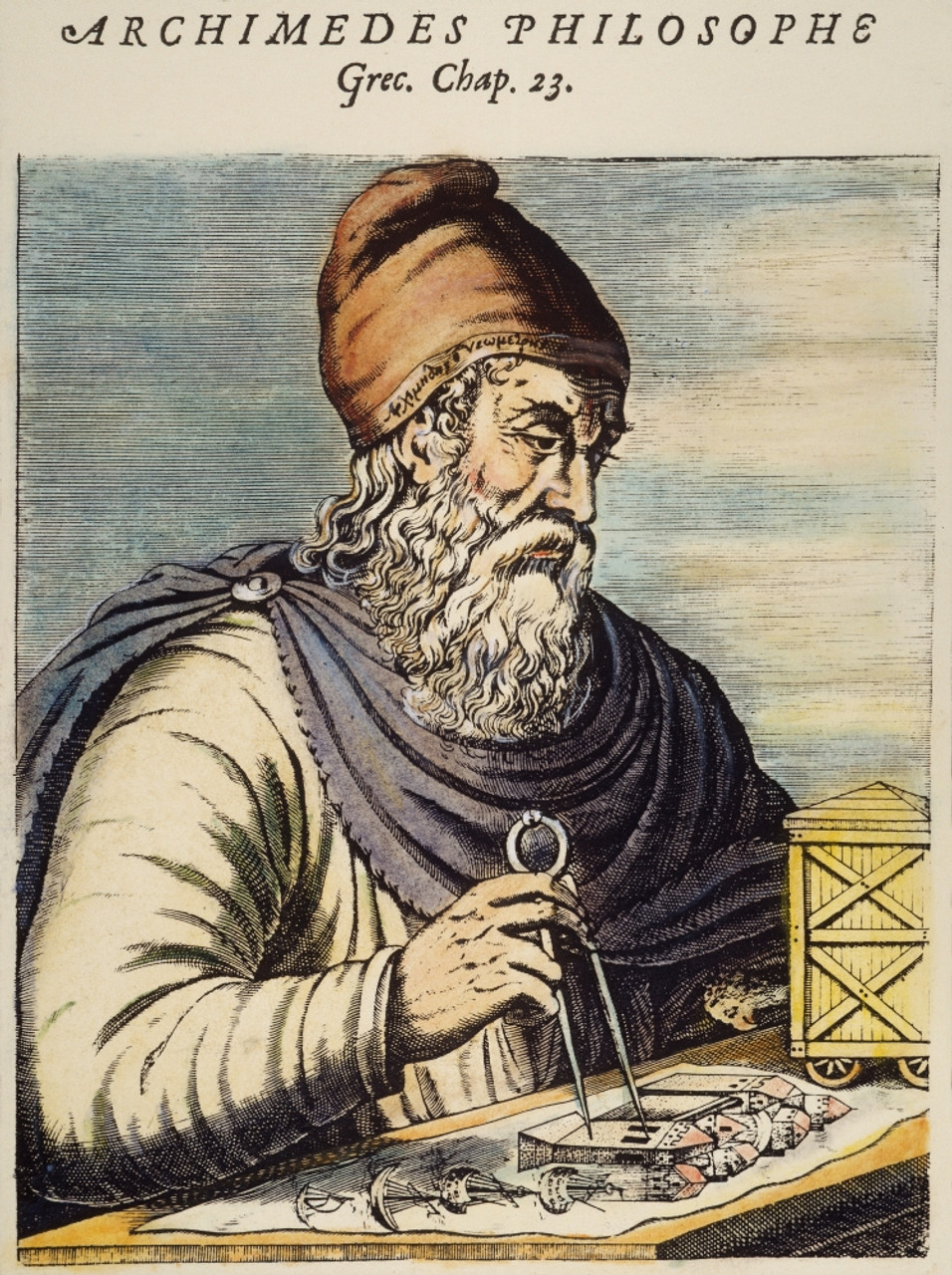 Древнегреческий математик, физик и инженер из города Сиракузы. Автор закона гидростатики (принципа Архимеда). Изобрёл винтовой насос для подъема воды, усовершенствовал блоки и рычаги. Разработал военные машины — катапульты и «огненные зеркала» — для защиты Сиракуз. В математике открыл методы вычисления площадей и объемов, предвосхитив интегральное исчисление. Его знаменитая фраза: «Дайте мне точку опоры, и я переверну Землю» стала символом силы человеческого разума. Погиб при захвате Сиракуз римлянами.