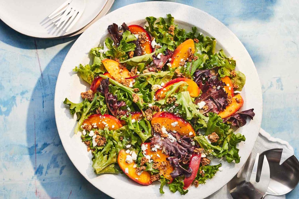 6. Салат из смешанной зелени с маринованными нектаринами