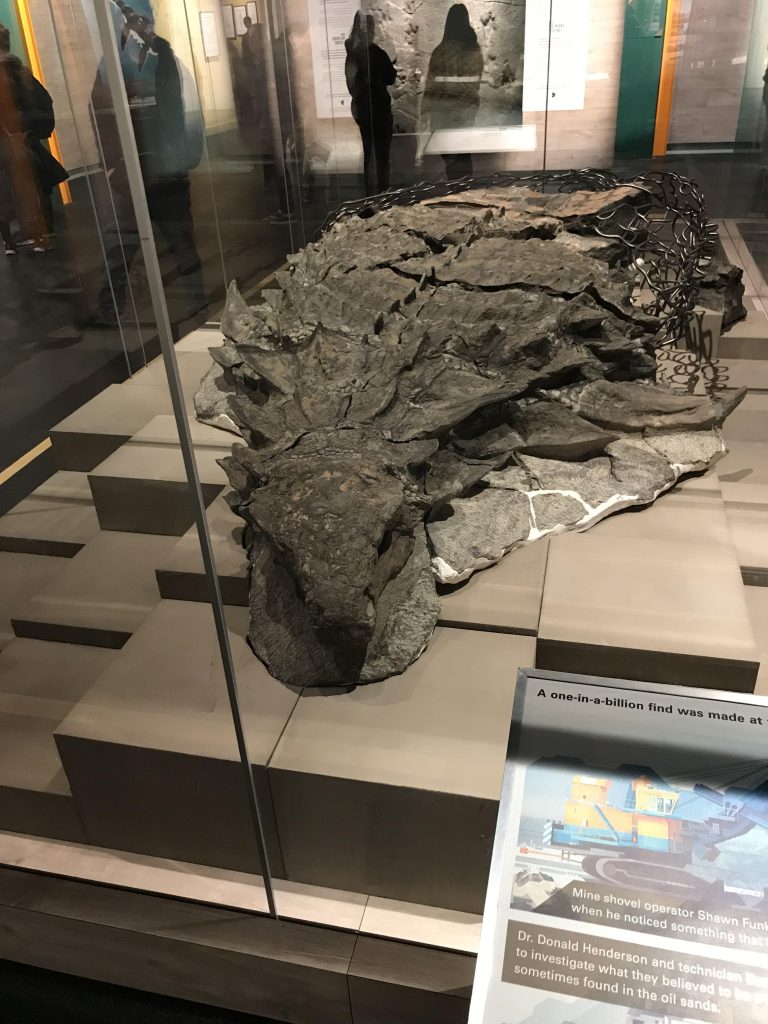 Эта находка, представленная в музее Королевского Тиррелл-Палеонтологического музея в провинции Альберта, считается самым хорошо сохранившимся броневым динозавром в мире. Borealopelta markmitchelli — нодозавр, чья броня и кожные покровы частично уцелели с минимальными разрушениями, что крайне редко для представителей этой группы.