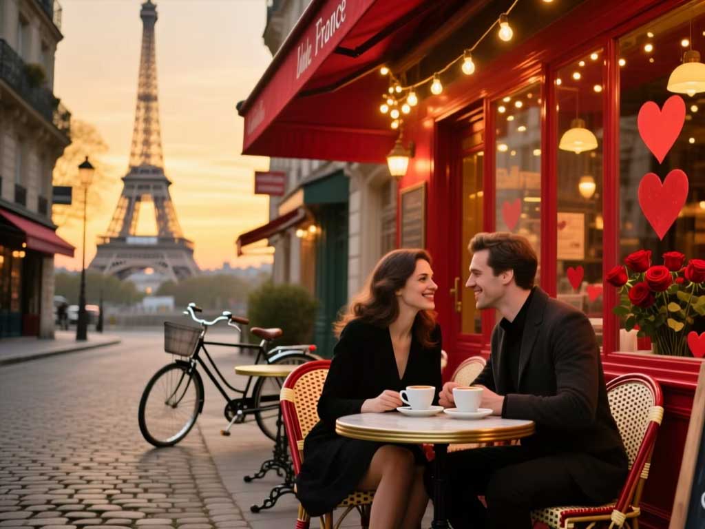 Франция позиционирует себя как одна из самых романтичных стран Европы, и 14 февраля здесь сопровождается особым вниманием к эстетике. В городе Сен-Валентен ежегодно проходит фестиваль Fête des Amoureux с цветочными инсталляциями и символическими церемониями. Историки отмечают, что во Франции XV века герцог Орлеанский отправлял супруге любовные послания, которые считаются одними из ранних «валентинок». Во Франции был зафиксирован один из первых задокументированных любовных писем, подписанных именем святого Валентина.