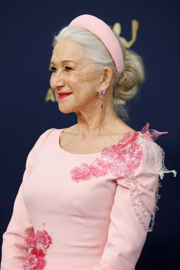 Хелен Миррен — одна из первых актрис, кто начал открыто появляться на красных дорожках с естественным серебристым оттенком волос. Ее карьера включает премию «Оскар» за фильм «Королева» 2006 года, что укрепило ее статус в индустрии. Она неоднократно подчеркивала, что седина — это не признак старения, а часть индивидуального стиля. В разные годы актриса экспериментировала с оттенками седого, включая легкие пастельные тона, что стало заметным трендом.